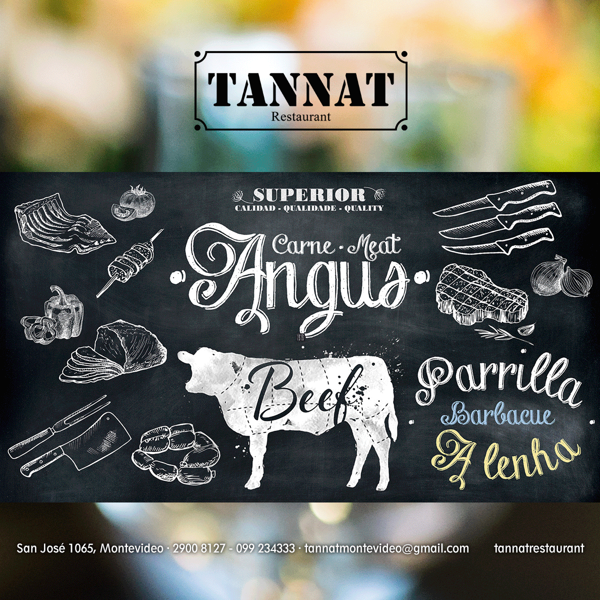 Ubicado en el corazón de Montevideo, Tannat combina la tradición de la parrilla uruguaya con una propuesta gastronómica de excelencia. Desarrollamos diferentes piezas de comunicación para el salón, destacando la identidad del restaurante y reforzando la experiencia de marca a través de una estética cálida, coherente y cuidada en cada detalle.